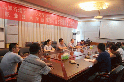 中国人民银行遂宁市中心支行副行长杨屹东希望银校双方切实加强交流沟通与合作,并以此为平台,借助双方各自优势,在更多的专业、更多的领域开展更多更好的合作,共同促进人才培养质量提高和经济社会的繁荣与发展,共同促进社会的文明与进步。